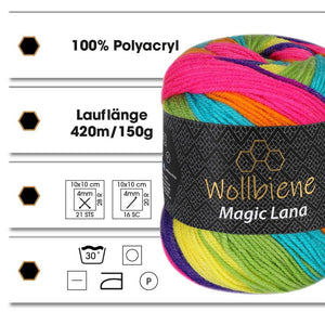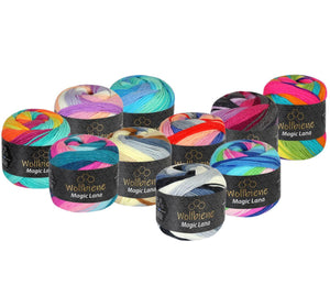 Mit Wollbiene Magic Lana entstehen einzigartige Projekte mit faszinierenden Farbverläufen. Die harmonisch abgestimmten Farben gehen fließend ineinander über und machen jedes Stück zu einem echten Unikat.